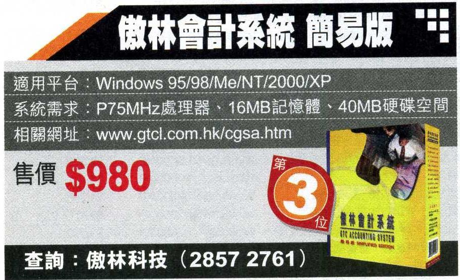 SME Software top. 03 Glorious Technology 傲林會計系統簡易版(送 傲林進銷存系統簡易版)